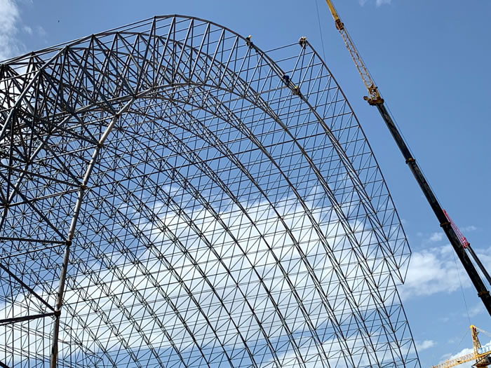 (2)网架加工前应对现场尺寸进行复测,确认无误后方可进行加工、安装;网架制作、运输、安装应遵守《空间网格结构技术规程》JGJ7-2010、《钢网架黄石螺栓球节点》JG/T 10-2009、《钢网架黄石螺栓球节点用高强度螺栓》 GB/T 16939-2016、《黄石钢结构黄石工程黄石施工规范》 GB50755-2012、《黄石钢结构黄石工程施工质量验收标准》 GB50205-2020。